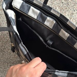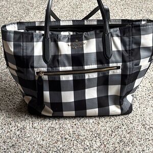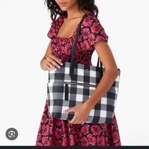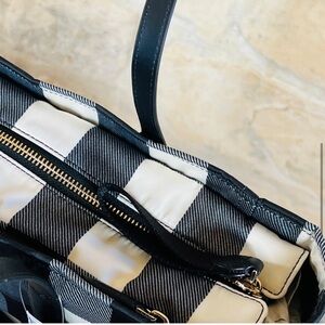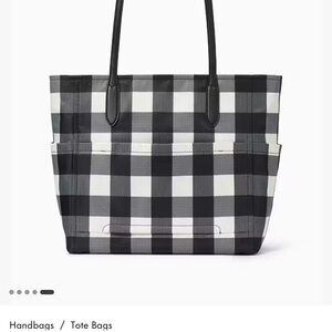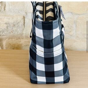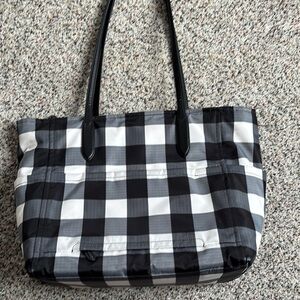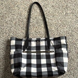 Stylish and versatile, this Kate Spade tote bag features a classic black and white checkered design. Perfect for everyday use, it combines elegance with practicality.