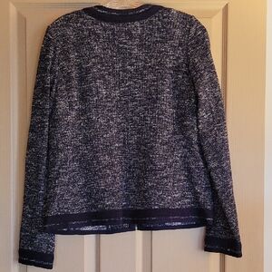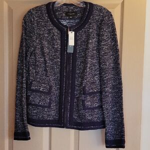 Stylish navy knit jacket with classic design. Ideal for any occasion. Size 10, NWT.