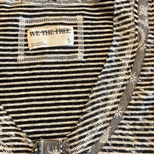 NWOT We the Free People Tank Top - Black & White Stripe with Contrast Print Detail at Neckline, Armholes & Hem, Front Snap Detail, Side Slits