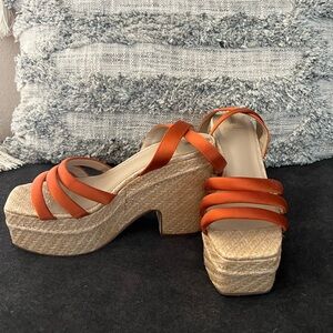 Elevate your warm weather look with the Tibby sandal from Sam Edelman. This pair sports a soaring platform and chunky heel accented by a raffia wrapping for a beachy highlight.