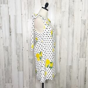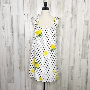 Lovers + Friends Womens Jen Dress Size M Lemon Polka Dot Shift Revolve White NWT