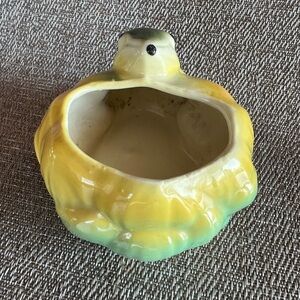 Cute Vintage McCoy Frog & Lotus Shaped Ceramic Planter 40's Era Yellow & Green