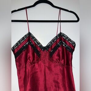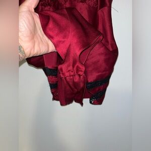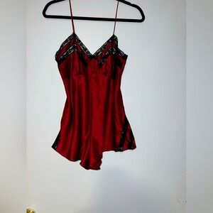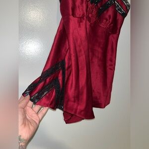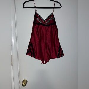 Vintage Victoria’s Secret Gold Label Satin Romper Bodysuit Teddy Burgundy Lace