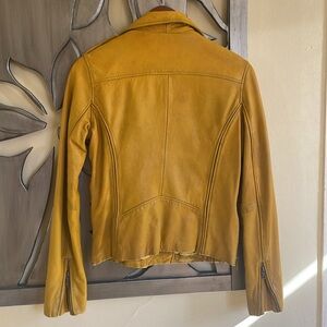 Linea Pelle Mustard Yellow Leather Moto Jacket Medium