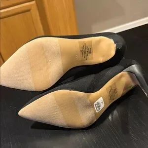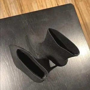 These black heeled boots feature a sleek sock-like fit, crafted from a stretchy knit fabric for a form-fitting look. The pointed toe and stiletto heel add a touch of elegance, making them perfect for any stylish occasion.