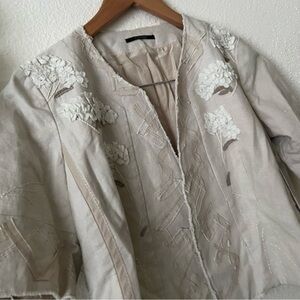 Elie Tahari Beige Linen Cotton Blend Embroidered Cropped Jacket