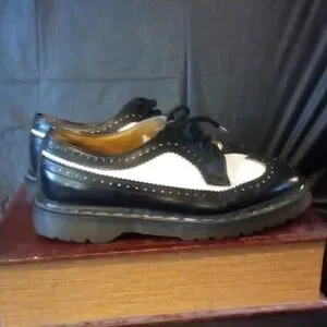 Dr. Martens Mens USA 8 Ladies 9 - Run Large as these are BRITISH sized 7 mens, Black and White Oxford Shoes; soles like new - vintage; made in England