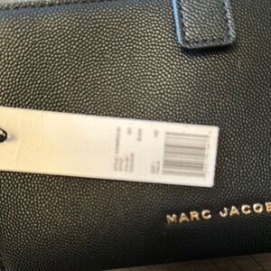 Elegant black wallet with gold accents. Features a wrist strap and secure closure. Perfect for everyday use.