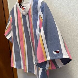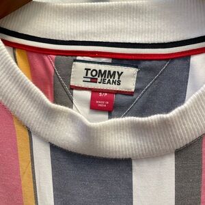 Colorful vertical striped cropped/boxy tee. This shirt is super fun! Small Tommy Hilfiger logo on sleeve. Excellent condition.
