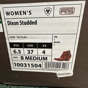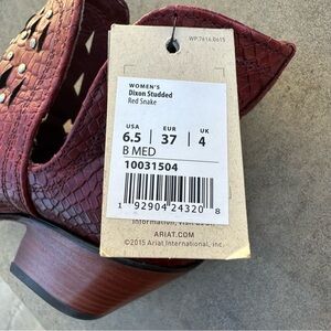 Ariat Dixon Studded Ankle Boots Red Snake Western Cowgirl Size 6.5 NIB