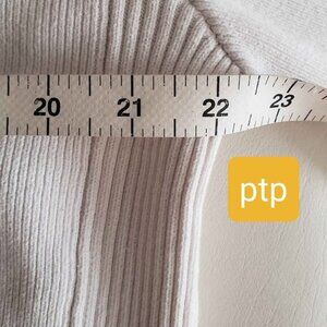 This thick cotton knit sweater has shrunk. Size shows XXL but fits medium to large. See images for measurements. Some slight discoloration around the inner collar and loose threading to holds one side of a tag. Priced accordingly.