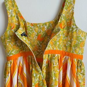 Details: This mini dress features a fit-and-flare silhouette and a flattering square neckline. Plus, it's cast in our print of the season: a sunny citrus motif with all the dolce vita vibes. By buying cotton products from J.Crew, you're supporting our investment in Better Cotton's mission to help cotton communities survive and thrive while protecting and restoring the environment. Back zipper closure.