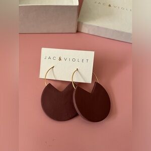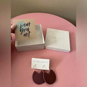Clay earrings from a small Minnesota based business. Made from clay and brass, they are beautiful for any occasion! Never been worn and will come with box and business card. Color is close to a burgundy/maroon
