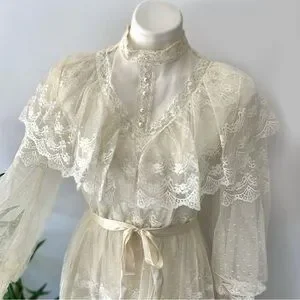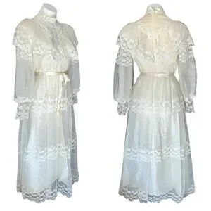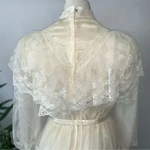 Dreamy ivory light cream long sleeve lace gown, incredible romantic, Victorian, 70s Gunne Sax vibes