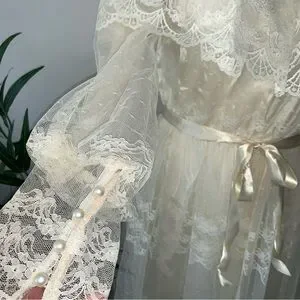 Beautiful true authentic vintage romantic lace gown. No labels left, only a piece of paper label remaining. Best for size S/M, please check measurements. Charm, Victorian style with incredible quality & craftsmanship.
