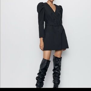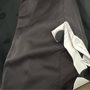 Step out in style with this elegant black dress. Perfect for any occasion, this dress offers a sophisticated look with its sleek design. Belt is removable. Has two front closed pockets but can be ripped open. There is one extra button on the material tag. Super cute and classy dress. Worn once