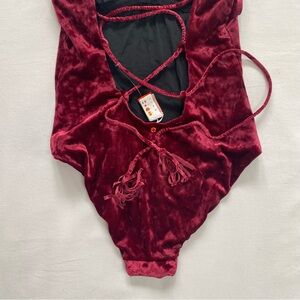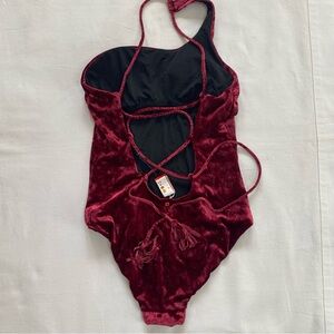 Red Carter One-Shoulder Velvet One Piece Swimsuit Small NWOT Burgundy
