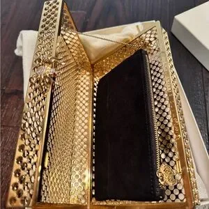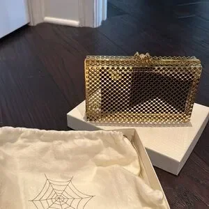 Elevate your style with the Charlotte Olympia Gold Clutch Bag. This stunning accessory adds a touch of luxury to any outfit. Removable black pouch inside.