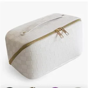 Waterproof Big Cosmetics bag for Women Portable Handle Makeups Organizer Toiletry Purse (Large, White