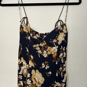 Show some leg. This is a midi dress with a sweetheart neckline, high slit, an overlapping skirt, and strap ties. The Kourtney Dress has a relaxed fitting skirt.