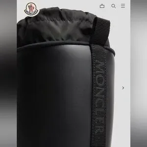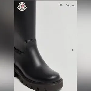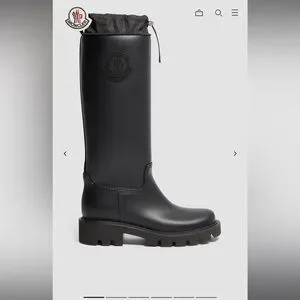 Stylish black tall boots by Moncler. Features a sleek design with a logo detail.