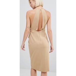 LAVISH ALICE Tan Wrap Front Plunge Back Mini Dress Size US 6