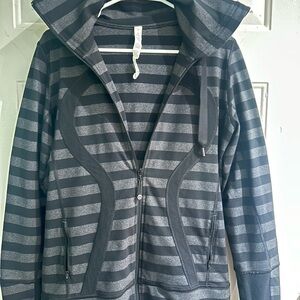 Lululemon Stride Jacket Black Micro Macro Stripe Hooded Full Zip