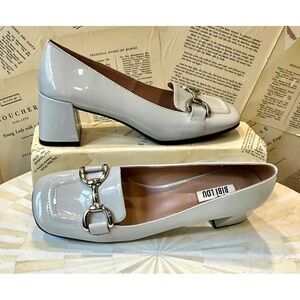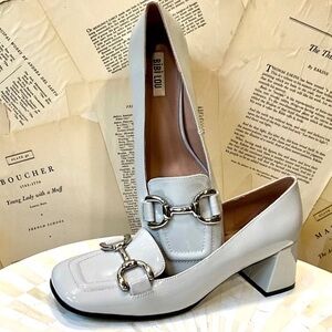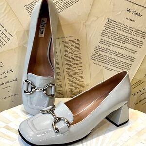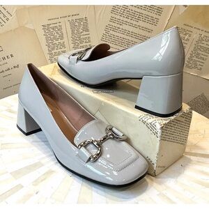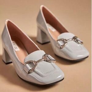 Anthropologie Bibi Lou Valencia Heel Loafer Light Gray Patent Leather