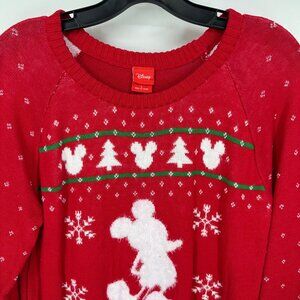 Disney Mickey Mouse Christmas Sweater L Holiday Fair Isle Print Snowflake Red