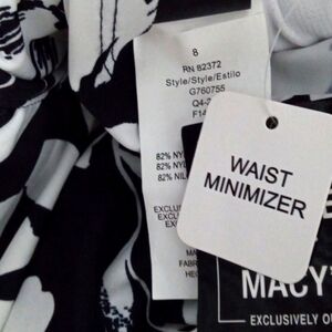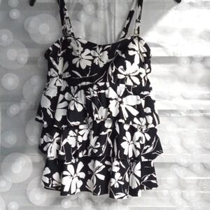 MACY'S ISLAND ESCAPE SWIM TOP Black White Floral Waist Minimizer Tankini Swim Top Size 8 NWT