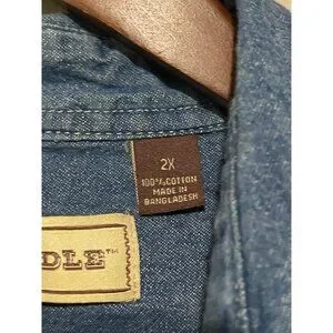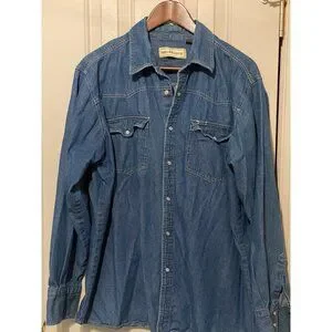 Bit & Bridle Blue Denim Long Sleeve Pearl Snap Down Men's XXL