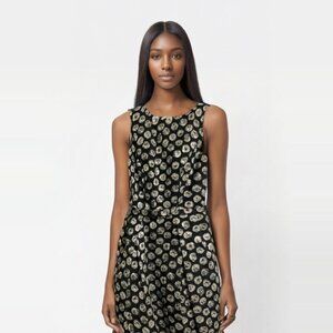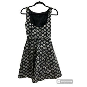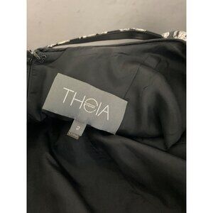 THEIA Dress Printed Cocktail Sleeveless Knee Length Belted in Black/Silver size 2