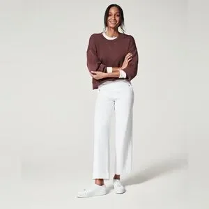 Spanx Stretch Twill Cropped Wide Leg Pant-Bright White Size Medium Style 20312R