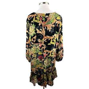 ABS Collection Crushed Velvet Floral Dress Long Sleeve Ruffle Black Plus Size 22