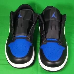 Step up your style with these Nike Jordan 1 Low Black Royal Toe men's sneakers. Featuring a sleek black and blue design, these shoes offer both comfort and fashion. Perfect for any casual outing.