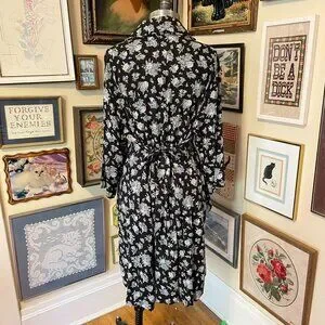 April Cornell 2X Floral Black & White Floral Dress With Long Sleeve & Tie Waist