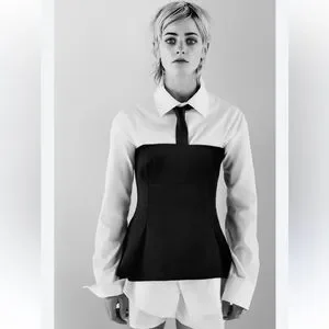 Zara Black Wool Blend Strapless Peplum Top straight neck Pleat detail size L NWT