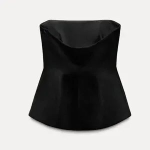 Zara Black Wool Blend Strapless Peplum Top straight neck Pleat detail size Large NWT