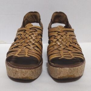 Tory Burch Killiam Leather Woven Cork Wedge Sandals US 7.5