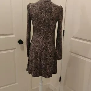 Paisley Pink/Black Soft Stretch Dress Elegant Floral Long Sleeve Dress XS