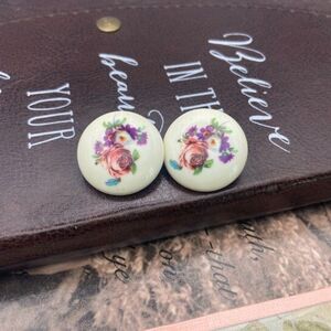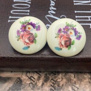 Rare find, a pair of vintage west Germany floral bouquet clip earrings in good vintage condition. The back of them have a little bit of vintage wear but overall a nice pair of earrings that have stood the time of 60+ years. What I love most is the bouquet array of flowers of red roses and purple floral.