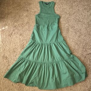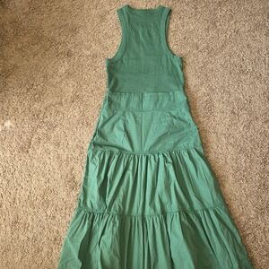 The Austyn is the newest addition to Veronica Beard's best-selling series of mixed-media garments. Pre-layered for maximum impact, and minimal effort, this dress combines a tiered, flounced midi skirt with a ribbed tank; a tie at the waist adds definition. Keep the look refined with strappy sandals or casual with your favorite sneakers.