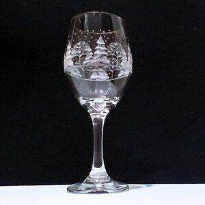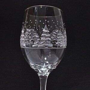 Elegant goblets etched with a serene winter scene, featuring trees and snowflakes.