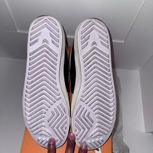 Although it harnesses the old-school look of the original sneaker, this rethought sneaker features an elastic heel with large pull tabs. It also features oversized Nike swooshes on its sides, jumbo laces, raised herringbone pattern on the rubber outsole, a soft suede accent on the toe, and red stitching around its toe and heel.
