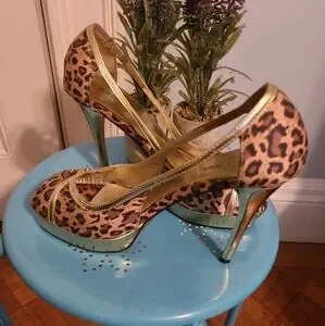 Gold and leopard slight platform heels 7.5 hp 🔥🔥😋