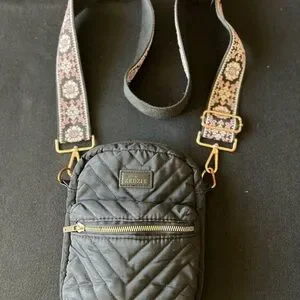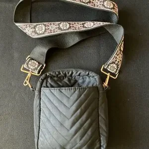Black Quilted Crossbody Bag by KEDZIE with 2in tapestry strap