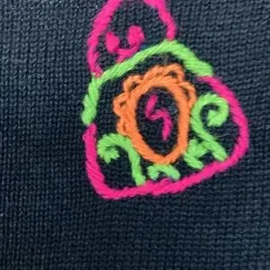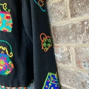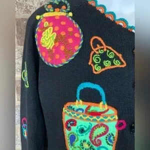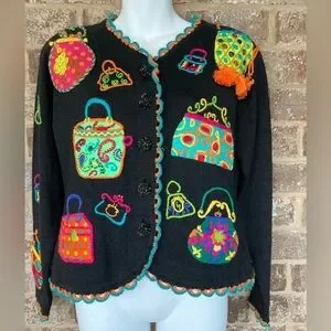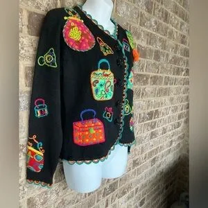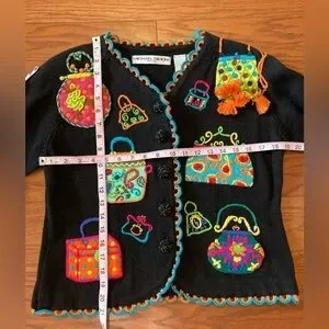 Vintage 1994 Michael Simon multi color crochet patch sweater Size S Purses