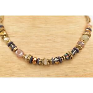 Vivi Love Vintage Crystal Necklace Gold Tone Beaded Antiqued Signed 1990s BinBC