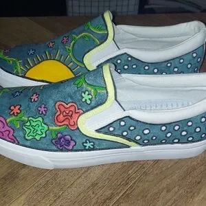 Hand painted canvas shoes, custom made to your liking. In the picture, is only an example. I can also do other designs and colors of your choice. I will need your shoe size, and some inspiration of what you would like for me to create.