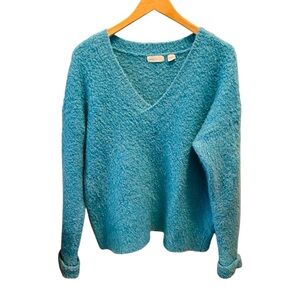Super soft v neck pullover wool blend sweater . Oversized and cozy . EUC. Size small measures shoulder to hem 26”, armpit to armpit 25”, waist 21”